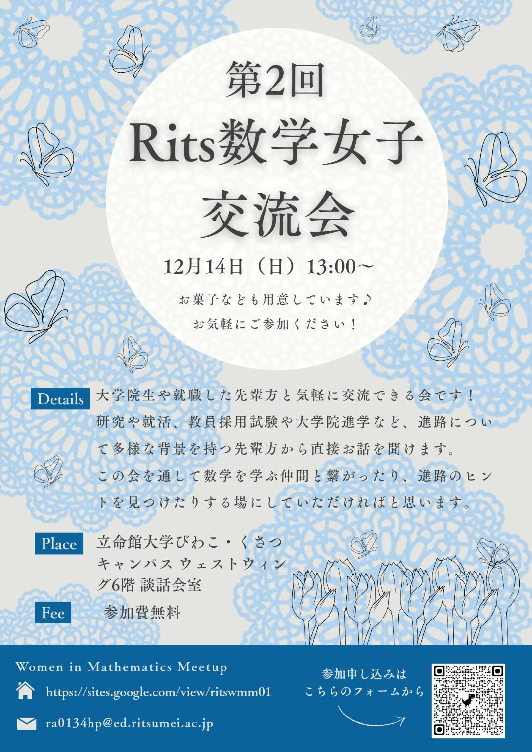 「第2回Rits数学女子交流会」ハイブリッド開催のお知らせ Sch. 中・高生向けCol. 学部・院生向け